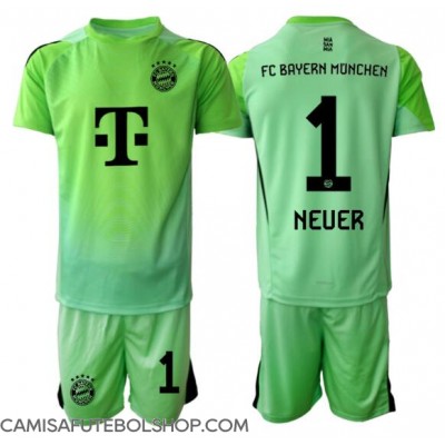 Camisa de time de futebol Bayern Munich Manuel Neuer #1 Goleiro Replicas 1º Equipamento Infantil 2025-26 Manga Curta (+ Calças curtas)