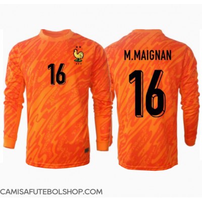 Camisa de time de futebol França Mike Maignan #16 Goleiro Replicas 2º Equipamento Europeu 2024 Manga Comprida