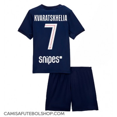 Camisa de time de futebol Paris Saint-Germain Khvicha Kvaratskhelia #7 Replicas 1º Equipamento Infantil 2025-26 Manga Curta (+ Calças curtas)