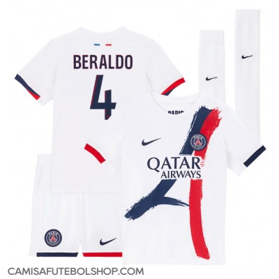 Camisa de time de futebol Paris Saint-Germain Lucas Beraldo #4 Replicas 2º Equipamento Infantil 2025-26 Manga Curta (+ Calças curtas)