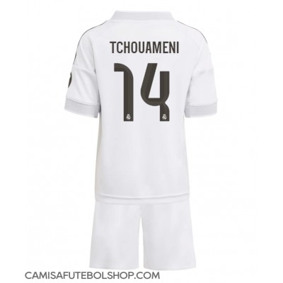 Camisa de time de futebol Real Madrid Aurelien Tchouameni #14 Replicas 1º Equipamento Infantil 2025-26 Manga Curta (+ Calças curtas)